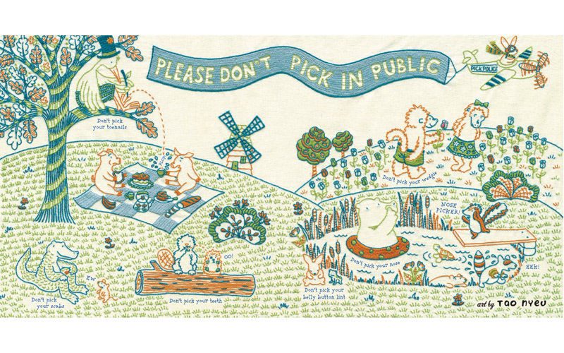 To pick, or not to pick? This etiquette question and loads more are answered in fourteen hilarious spreads by fourteen talented, well-loved artists. Each spread illustrates a setting from kids’ everyday lives (and the potential blunders they may commit there) and the text emphasizes the right behavior.